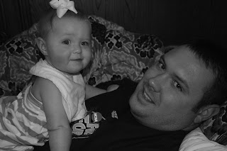 CRAWLER!!! (Just one!) Parker started crawling while Cody and I were out of town this weekend... Mom was here watching the kiddos...It is the most adorable thing watching him crawl all over the house! Ok, well maybe not fun having to chase him around, but just seeing that little guy get around is hilarious... Kaylie just sits and looks at him, just wishing she could get into stuff like he does! He is obessessed with pulling the DVD's off of the shelf, getting into the dog food bowl, and trying to pull up on our make-shift coffee table (It's a huge tupperware container...haha.. only because we had to get rid of the sharp-edged, glass top one we had and haven't had the time to get a new one yet!)